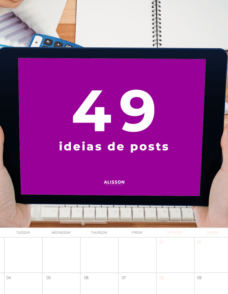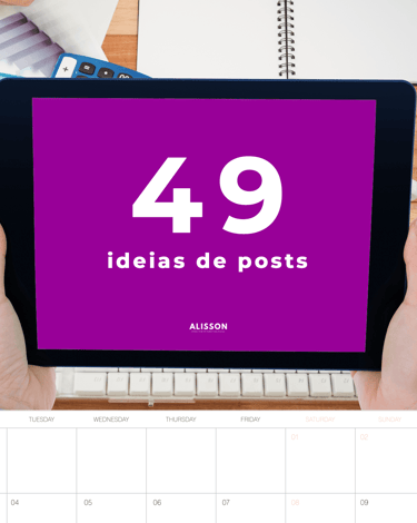 PDF com duas páginas exclusivas com 49 ideias de conteúdos para postar nas redes sociais. Indicação de ferramentas para criadores de conteúdos.
