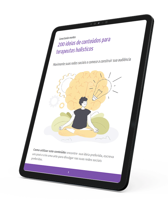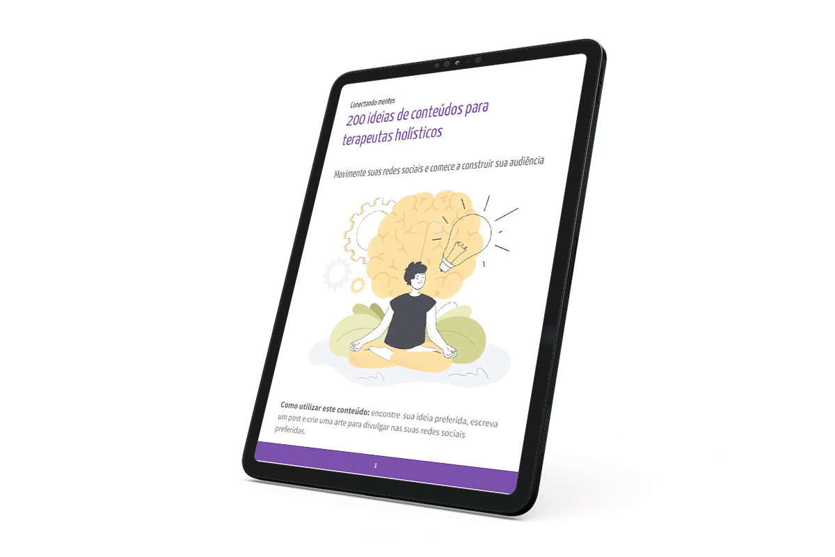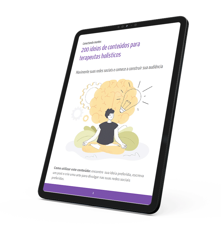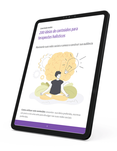 PDF com 26 páginas exclusivas apresentando 200 ideias de conteúdos para terapeutas holísticos criarem seus próprios conteúdos autênticos